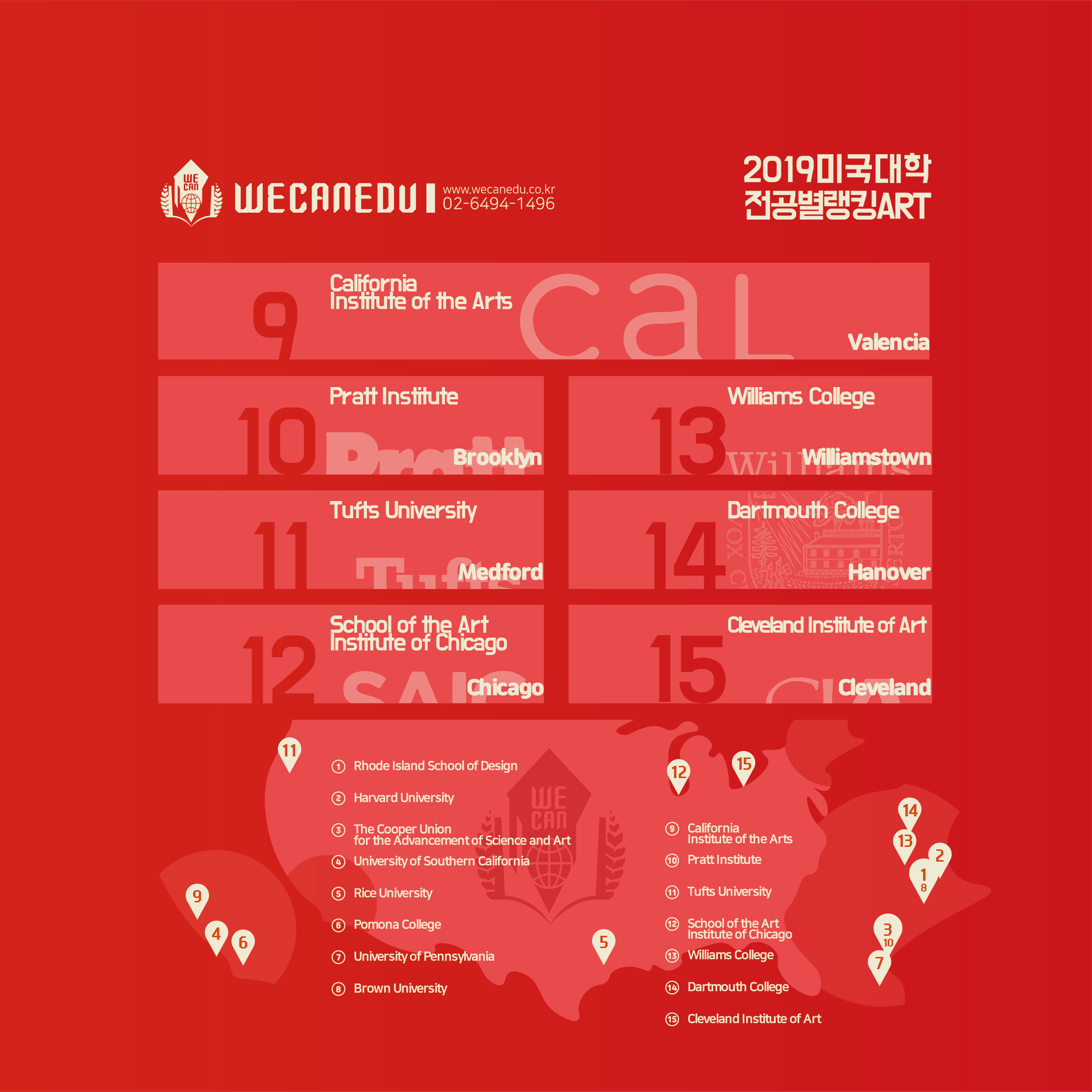 <2019 미국 미술대학 랭킹 TOP 15>