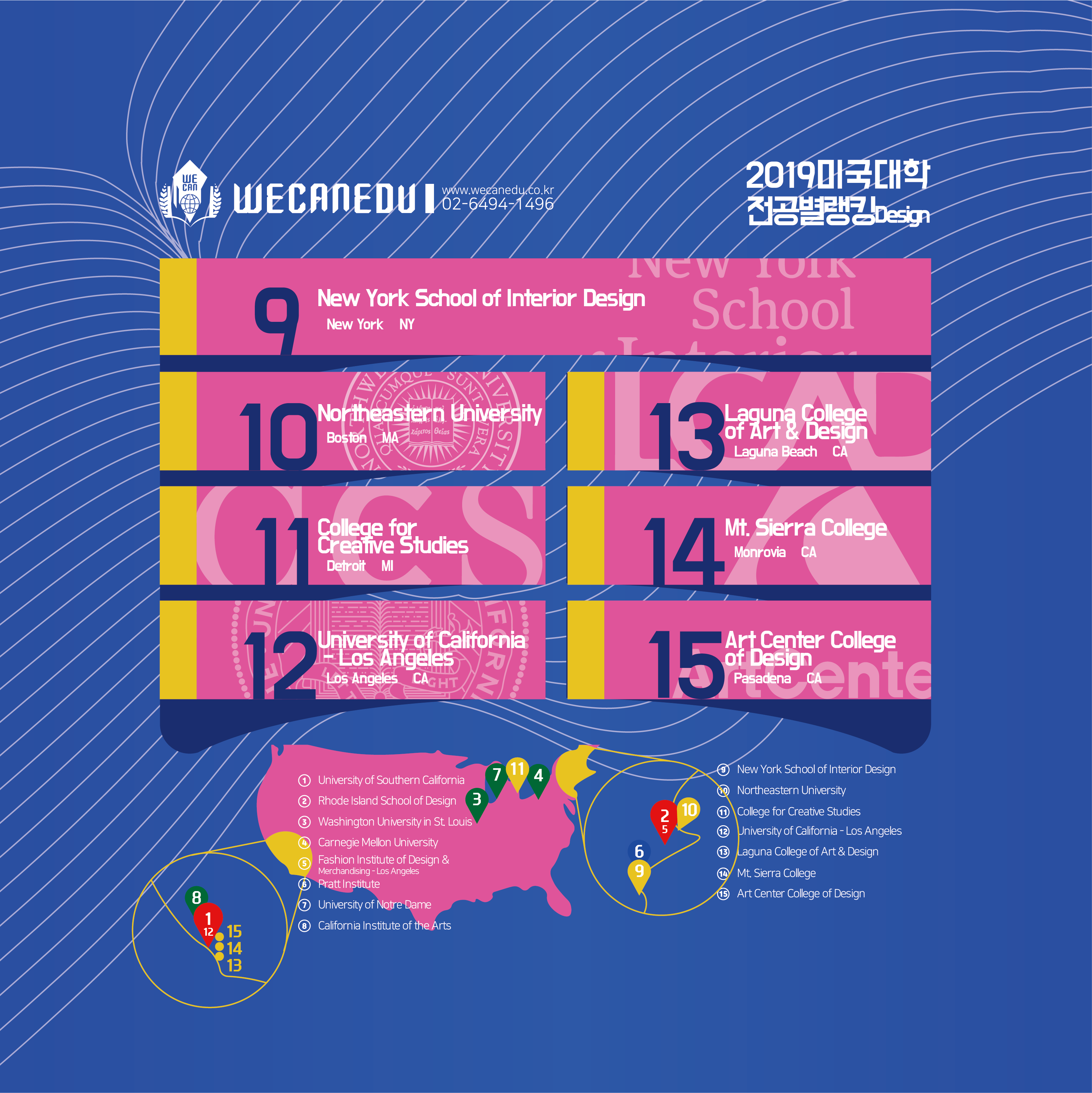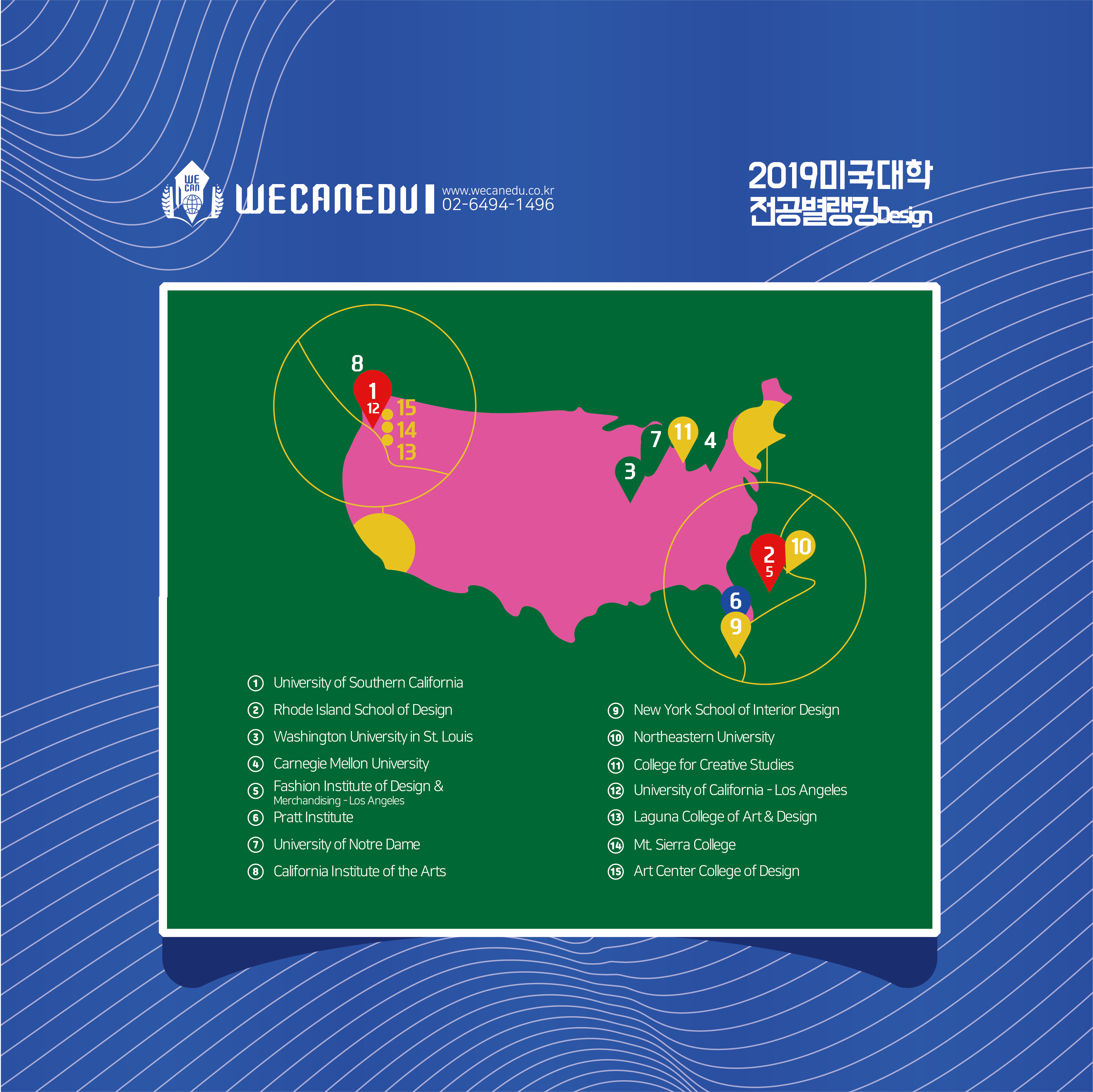 2019 미국 대학 전공별 랭킹 - 디자인 TOP 15