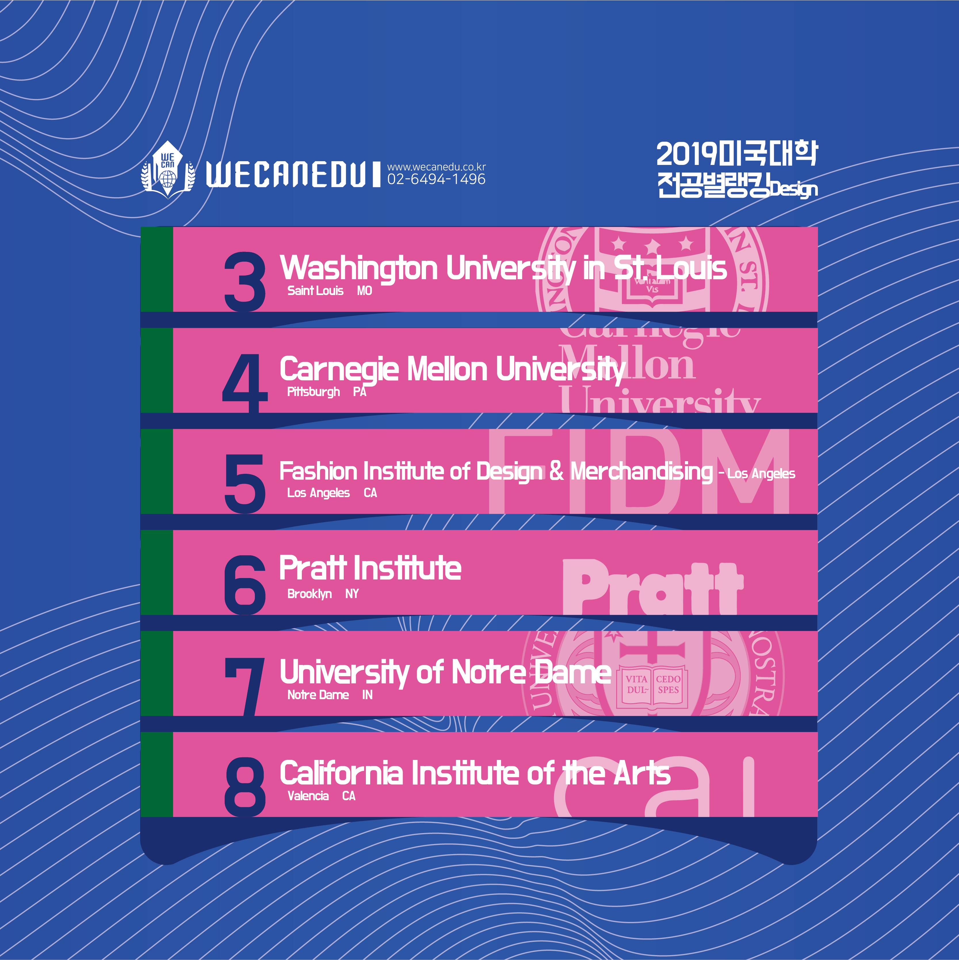 또한, 워싱턴 대학교도 3위로, 일반 평균 종합대학 순위보다 훨씬 디자인에서 강세를 보이고 있습니다.