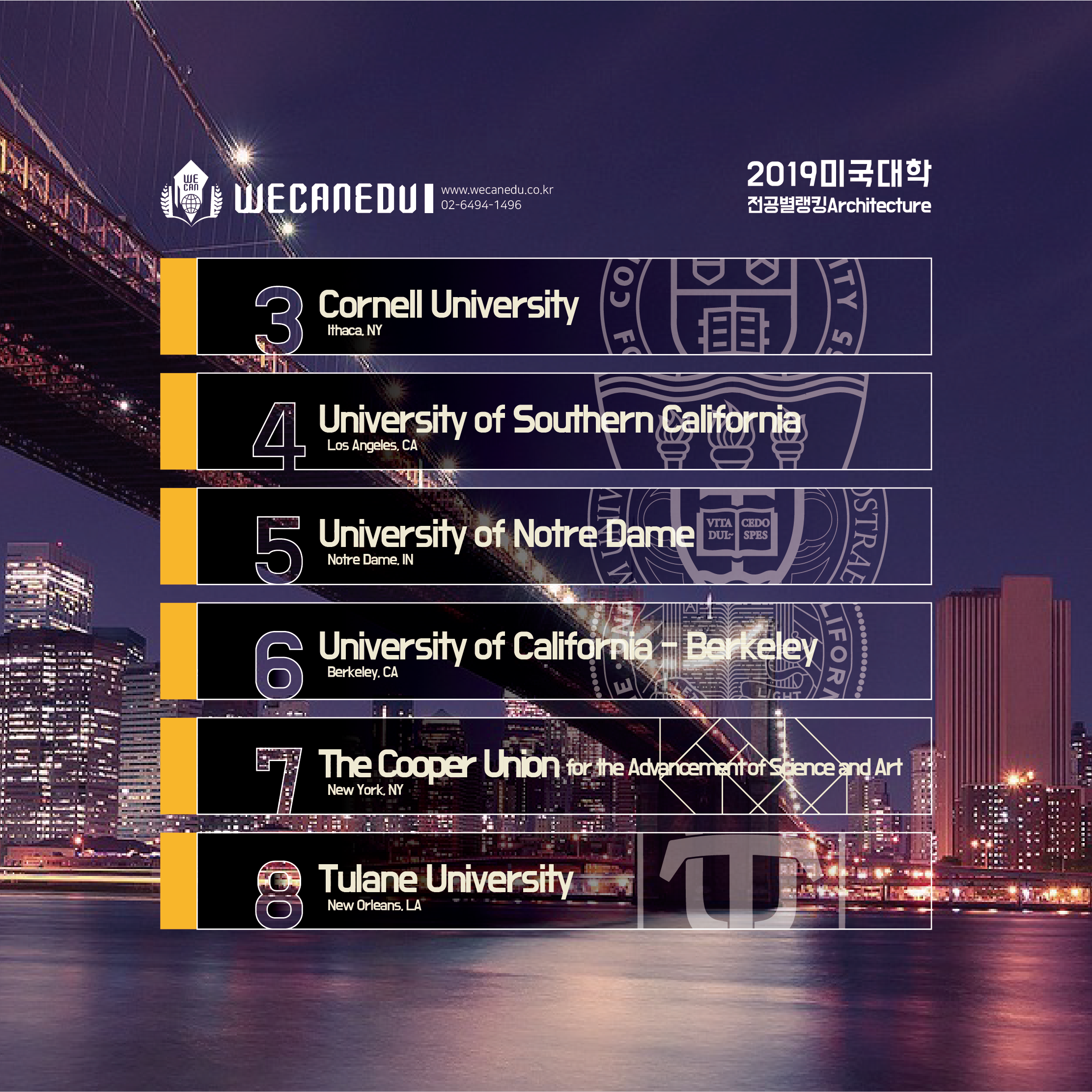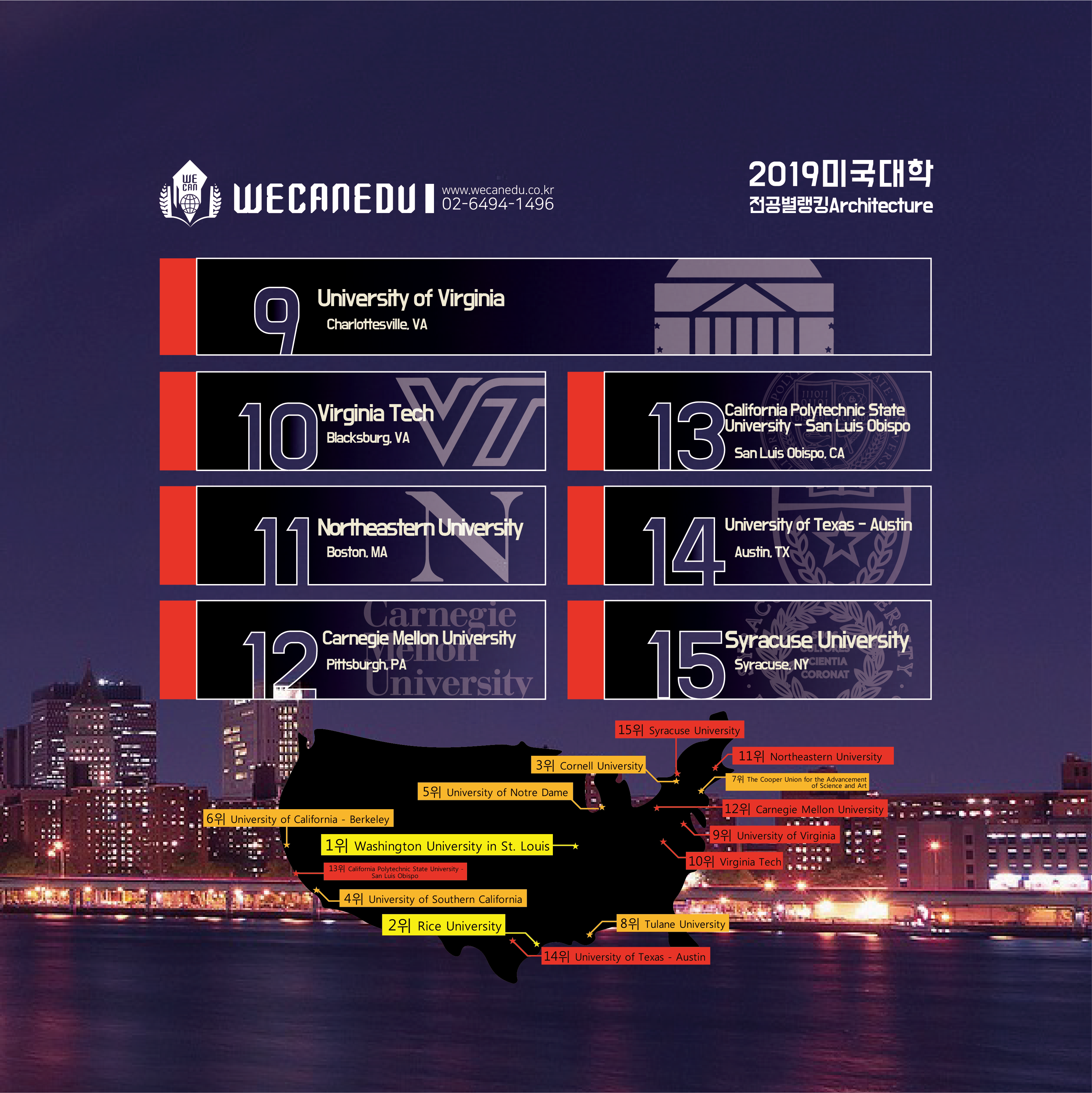 자, 그럼 과연 어떤 학교들이 건축학으로 유명할까요?