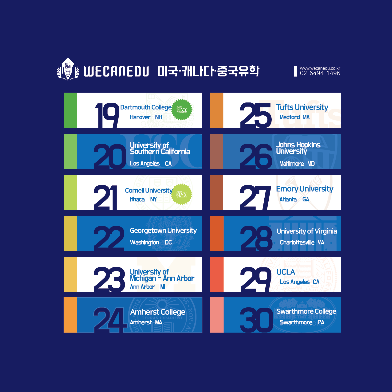 그리고 아이비 리그 학교들이 상위에 있으나,