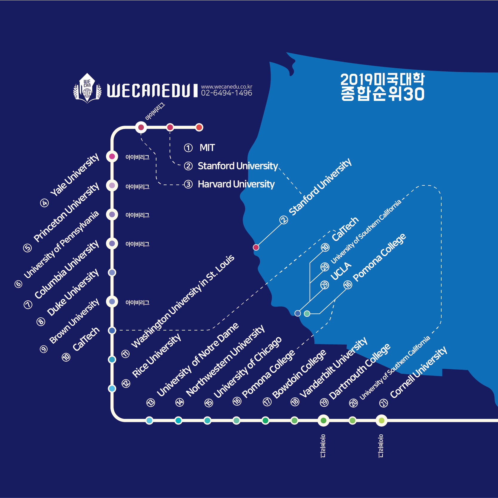 <2019 최신 미국 대학 종합 랭킹 - 2019년 7월 기준>