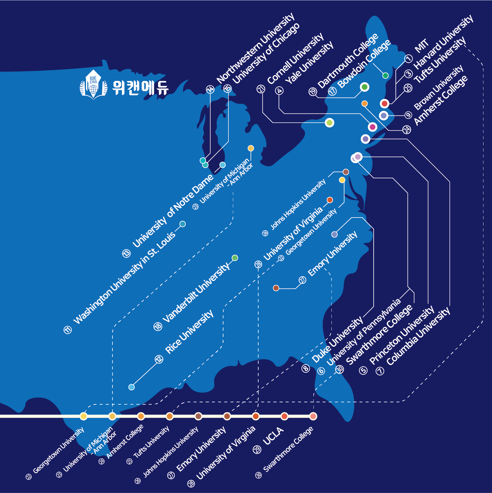 30위까지 봐도 어마어마한 대학교들이 포진해있죠?