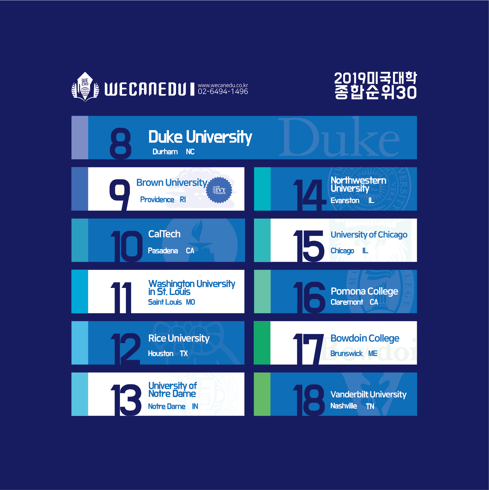 <2019 최신 미국 대학 종합 랭킹 - 2019년 7월 기준>