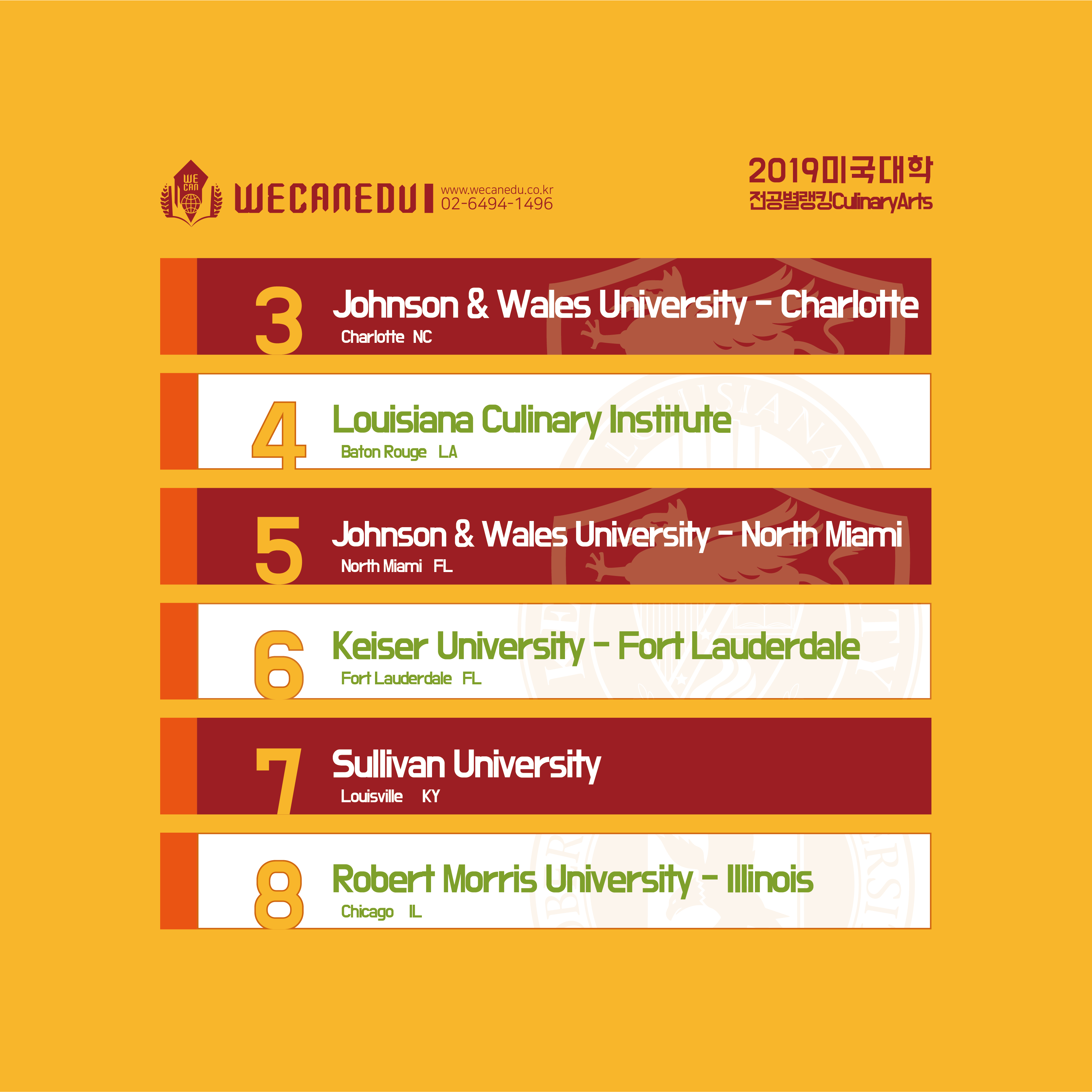 <전공별 미국 대학 순위 요리 (Culinary Arts) - TOP 15>