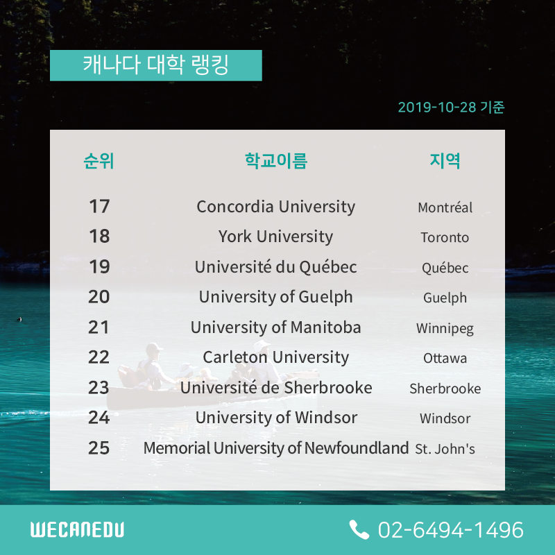2020년 캐나다 대학 순위 TOP 25 안에 있다면,
