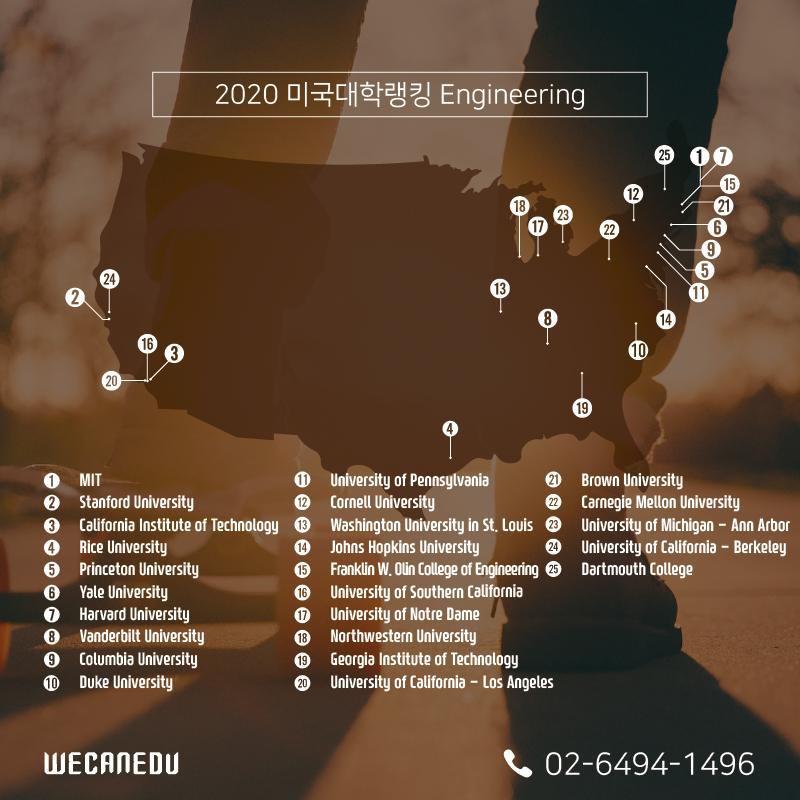 "2020년 미국 대학순위 - 공학 (Engineering)대학 TOP 25"
