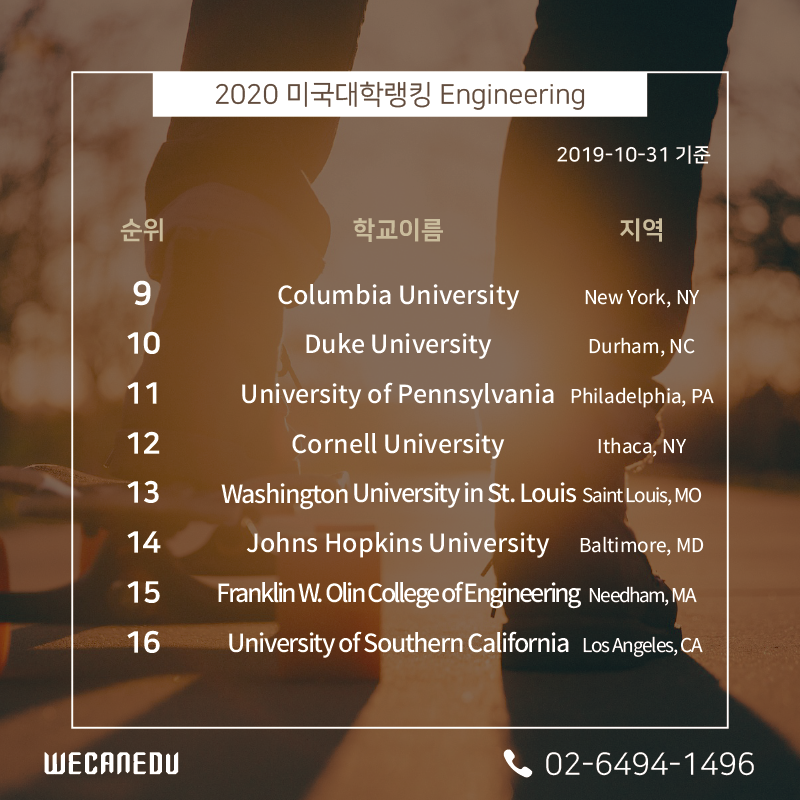 "2020년 미국 대학순위 - 공학 (Engineering)대학 TOP 25"
